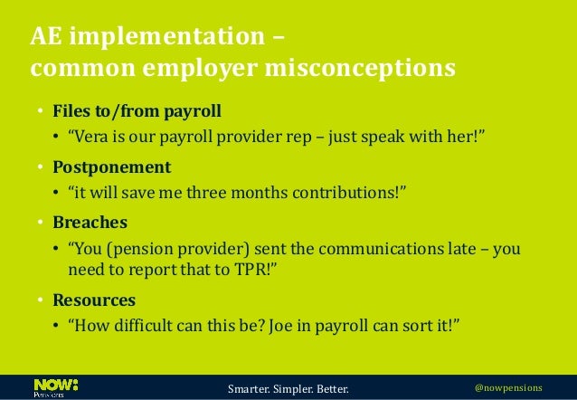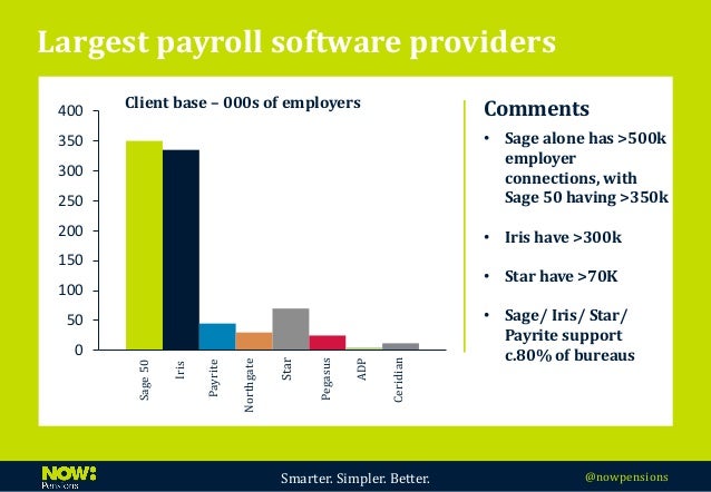 Our payroll department processes over 300 payrolls a month and we have invested in software to help clients with the administrative burdens of auto enrolment. Comparison between NEST, NOW: Pensions and The People’s Pension ... View This Document